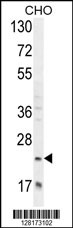 RILPL2 Antibody (Center) (Cat. APR13103G) western blot analysis in CHO cell line lysates (35ug/lane).This demonstrates the RILPL2 antibody detected the RILPL2 protein (arrow).