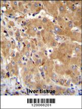 GGH Antibody (N-term) (Cat. AMM04763G)immunohistochemistry analysis in formalin fixed and paraffin embedded human liver tissue followed by peroxidase conjugation of the secondary antibody and DAB staining.This data demonstrates the use of GGH Antibody (N-term) for immunohistochemistry. Clinical relevance has not been evaluated.