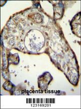 MNDA Antibody (N-term) (Cat. APR17401G)immunohistochemistry analysis in formalin fixed and paraffin embedded human placenta tissue followed by peroxidase conjugation of the secondary antibody and DAB staining.This data demonstrates the use of MNDA Antibody (N-term) for immunohistochemistry. Clinical relevance has not been evaluated.