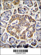 GRIN2A Antibody (C-term) (Cat. APR12271G)immunohistochemistry analysis in formalin fixed and paraffin embedded human pancreas tissue followed by peroxidase conjugation of the secondary antibody and DAB staining.This data demonstrates the use of GRIN2A Antibody (C-term) for immunohistochemistry. Clinical relevance has not been evaluated.