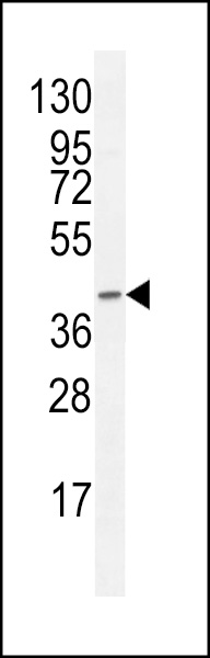 F8A2 Antibody (N-term) (Cat. APR11889G) western blot analysis in CEM cell line lysates (35ug/lane).This demonstrates the F8A2 antibody detected the F8A2 protein (arrow). |