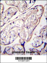 PYCR2 Antibody (Center) (Cat. AMR09667G)immunohistochemistry analysis in formalin fixed and paraffin embedded human placenta tissue followed by peroxidase conjugation of the secondary antibody and DAB staining.This data demonstrates the use of PYCR2 Antibody (Center) for immunohistochemistry. Clinical relevance has not been evaluated. |