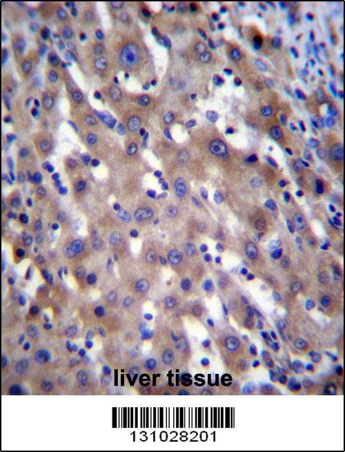 RPGR Antibody (C-term) (Cat. APR13146G)immunohistochemistry analysis in formalin fixed and paraffin embedded human liver tissue followed by peroxidase conjugation of the secondary antibody and DAB staining.This data demonstrates the use of RPGR Antibody (C-term) for immunohistochemistry. Clinical relevance has not been evaluated. |
