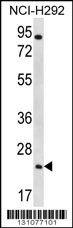AQP5 Antibody (C-term) (Cat. APG01967G) western blot analysis in NCI-H292 cell line lysates (35ug/lane).This demonstrates the AQP5 antibody detected the AQP5 protein (arrow). |