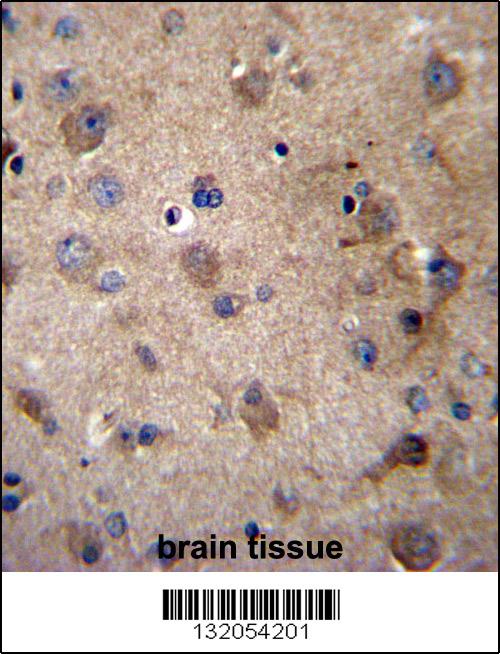 SERPINE2 Antibody (Center) (Cat. APR13268G)immunohistochemistry analysis in formalin fixed and paraffin embedded human brain tissue followed by peroxidase conjugation of the secondary antibody and DAB staining.This data demonstrates the use of SERPINE2 Antibody (Center) for immunohistochemistry. Clinical relevance has not been evaluated. |
