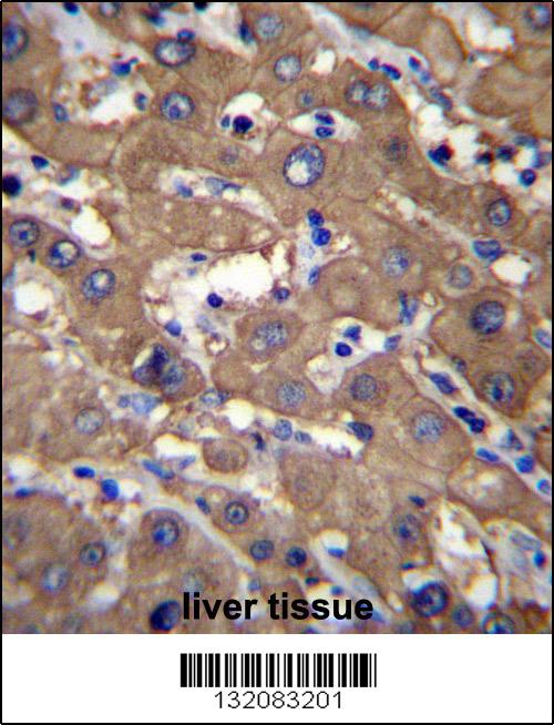 UGDH Antibody (C-term) (Cat. APR10653G)immunohistochemistry analysis in formalin fixed and paraffin embedded human liver tissue followed by peroxidase conjugation of the secondary antibody and DAB staining.This data demonstrates the use of UGDH Antibody (C-term) for immunohistochemistry. Clinical relevance has not been evaluated. |