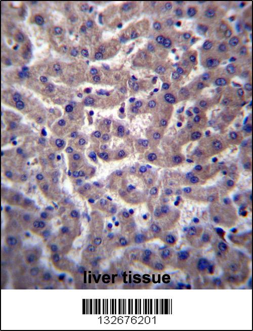 PTGR2 Antibody (N-term) (Cat. AMR09619G)immunohistochemistry analysis in formalin fixed and paraffin embedded human liver tissue followed by peroxidase conjugation of the secondary antibody and DAB staining.This data demonstrates the use of PTGR2 Antibody (N-term) for immunohistochemistry. Clinical relevance has not been evaluated. |