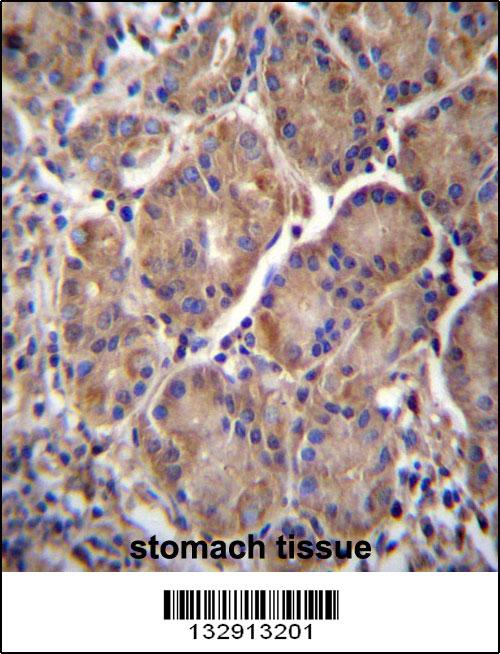 MMRN2 Antibody (C-term) (Cat. APR17399G)immunohistochemistry analysis in formalin fixed and paraffin embedded human stomach tissue followed by peroxidase conjugation of the secondary antibody and DAB staining.This data demonstrates the use of MMRN2 Antibody (C-term) for immunohistochemistry. Clinical relevance has not been evaluated. |
