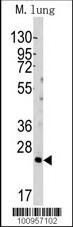 Western blot analysis of anti-hBid-BH3 Pab (Cat. APR07079G) in mouse lung tissue lysates (35ug/lane). hBid-BH3(arrow) was detected using the purified Pab.
