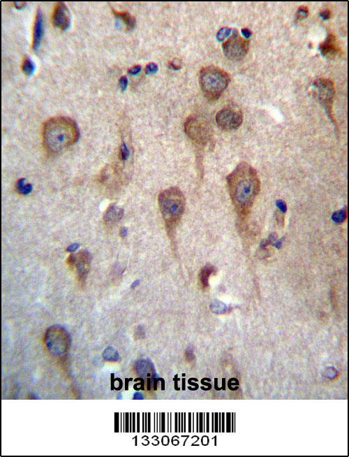 GPHB5 Antibody (C-term) (Cat. APR16468G)immunohistochemistry analysis in formalin fixed and paraffin embedded human brain tissue followed by peroxidase conjugation of the secondary antibody and DAB staining.This data demonstrates the use of GPHB5 Antibody (C-term) for immunohistochemistry. Clinical relevance has not been evaluated. |
