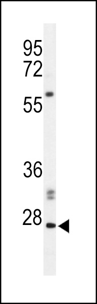 Western blot analysis of hPHO1-M1 (Cat. APR07019G) in Jurkat cell line lysates (35ug/lane). PHO1 (arrow) was detected using the purified Pab.