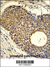 Formalin-fixed and paraffin-embedded human prostate carcinoma reacted with PHO1 Antibody (N-term), which was peroxidase-conjugated to the secondary antibody, followed by DAB staining. This data demonstrates the use of this antibody for immunohistochemistry; clinical relevance has not been evaluated. |
