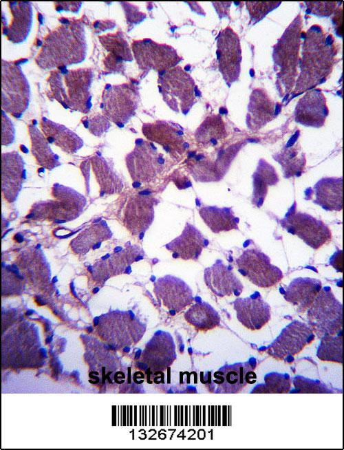 HSPA12B Antibody (N-term) (Cat. APR16755G)immunohistochemistry analysis in formalin fixed and paraffin embedded human skeletal muscle followed by peroxidase conjugation of the secondary antibody and DAB staining.This data demonstrates the use of HSPA12B Antibody (N-term) for immunohistochemistry. Clinical relevance has not been evaluated. |