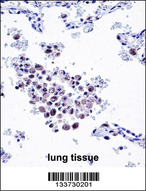 ARHGDIB Antibody (C-term) (Cat. APR14308G)immunohistochemistry analysis in formalin fixed and paraffin embedded human lung tissue followed by peroxidase conjugation of the secondary antibody and DAB staining.This data demonstrates the use of ARHGDIB Antibody (C-term) for immunohistochemistry. Clinical relevance has not been evaluated. |