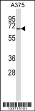 PPP3CA Antibody (C-term) (Cat. APR14378G) western blot analysis in A375 cell line lysates (35ug/lane).This demonstrates the PPP3CA antibody detected the PPP3CA protein (arrow). |