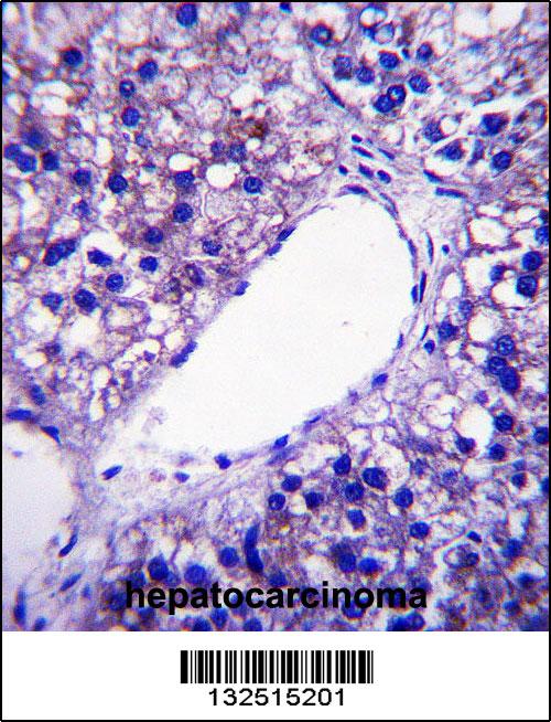 PNPLA4 Antibody (C-term) (Cat. AMR09413G)immunohistochemistry analysis in formalin fixed and paraffin embedded human hepatocarcinoma followed by peroxidase conjugation of the secondary antibody and DAB staining.This data demonstrates the use of PNPLA4 Antibody (C-term) for immunohistochemistry. Clinical relevance has not been evaluated. |