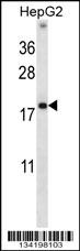 HMGN1 Antibody (N-term) (Cat. APR12388G) western blot analysis in HepG2 cell line lysates (35ug/lane).This demonstrates the HMGN1 antibody detected the HMGN1 protein (arrow).