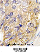 Formalin-fixed and paraffin-embedded human prostata carcinoma tissue reacted with DRAGON (RGMB) (C-term) (Cat. APR11798G), which was peroxidase-conjugated to the secondary antibody, followed by DAB staining. This data demonstrates the use of this antibody for immunohistochemistry; clinical relevance has not been evaluated.