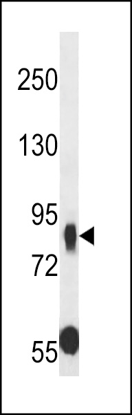 MUPCDH Antibody (N-term) (Cat. APR17484G) western blot analysis in A549 cell line lysates (35ug/lane).This demonstrates the MUPCDH antibody detected the MUPCDH protein (arrow). |