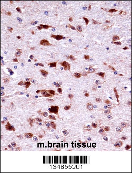 Mouse Phkg2 Antibody (N-term) (APR08496G)immunohistochemistry analysis in formalin fixed and paraffin embedded mouse brain tissue followed by peroxidase conjugation of the secondary antibody and DAB staining.This data demonstrates the use of Mouse Phkg2 Antibody (N-term) for immunohistochemistry. Clinical relevance has not been evaluated. |