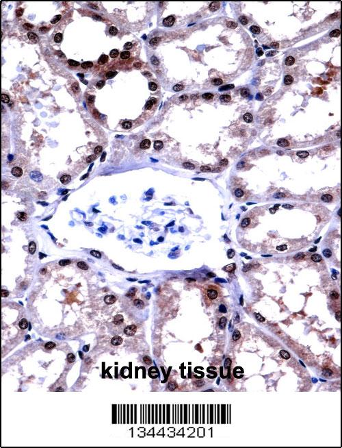 APLP2 Antibody (C-term) (APR11440G)immunohistochemistry analysis in formalin fixed and paraffin embedded human kidney tissue followed by peroxidase conjugation of the secondary antibody and DAB staining.This data demonstrates the use of APLP2 Antibody (C-term) for immunohistochemistry. Clinical relevance has not been evaluated. |