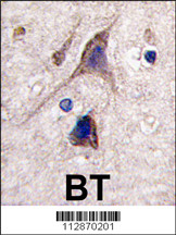 Formalin-fixed and paraffin-embedded human brain tissue reacted with CDH12 antibody (C-term), which was peroxidase-conjugated to the secondary antibody, followed by DAB staining. This data demonstrates the use of this antibody for immunohistochemistry; clinical relevance has not been evaluated. |