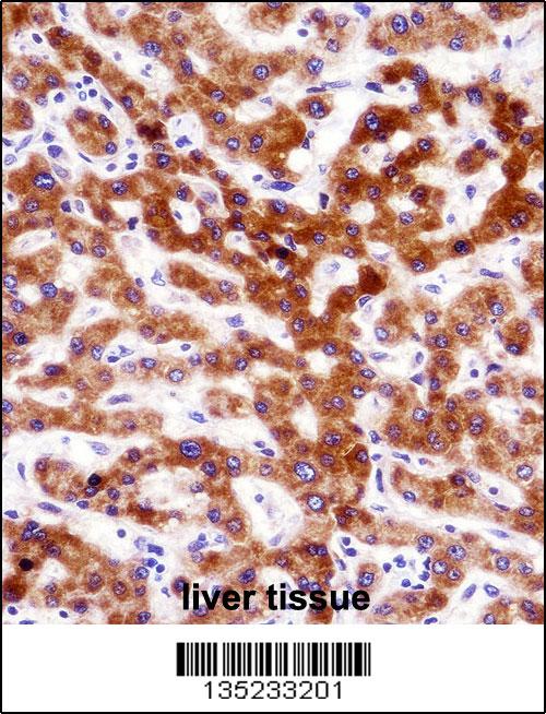 CCT4 Antibody (N-term) (APR15321G)immunohistochemistry analysis in formalin fixed and paraffin embedded human liver tissue followed by peroxidase conjugation of the secondary antibody and DAB staining.This data demonstrates the use of CCT4 Antibody (N-term) for immunohistochemistry. Clinical relevance has not been evaluated. |
