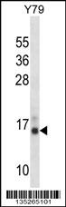PFN2 Antibody (C-term) (Cat. AMM07111G) western blot analysis in Y79 cell line lysates (35ug/lane).This demonstrates the PFN2 antibody detected the PFN2 protein (arrow). |