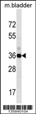 GIPC1 Antibody (N-term) (Cat. APR16140G) western blot analysis in mouse bladder tissue lysates (35ug/lane).This demonstrates the GIPC1 antibody detected the GIPC1 protein (arrow). |