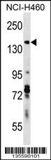 DIAPH3 Antibody (C-term) (Cat. APR15740G) western blot analysis in NCI-H460 cell line lysates (35ug/lane).This demonstrates the DIAPH3 antibody detected the DIAPH3 protein (arrow). |