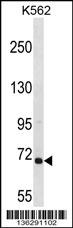 ARHGEF6 Antibody (C-term) (Cat. APR15030G) western blot analysis in K562 cell line lysates (35ug/lane).This demonstrates the ARHGEF6 antibody detected the ARHGEF6 protein (arrow). |