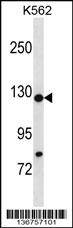 HIRA Antibody (N-term) (Cat. APR16638G) western blot analysis in K562 cell line lysates (35ug/lane).This demonstrates the HIRA antibody detected the HIRA protein (arrow). |