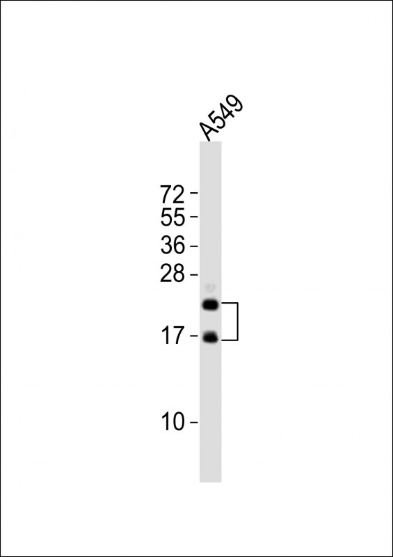 Anti-FGF2 Antibodyat 1:2000 dilution + A549 whole cell lysates Lysates/proteins at 20 μg per lane. Secondary Goat Anti-Rabbit IgG, (H+L), Peroxidase conjugated at 1/10000 dilution Predicted band size : 31 kDa Blocking/Dilution buffer: 5% NFDM/TBST.