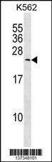 MYL6B Antibody (Center) (Cat. APR17500G) western blot analysis in K562 cell line lysates (35ug/lane).This demonstrates the MYL6B antibody detected the MYL6B protein (arrow). |