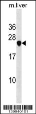 USE1 Antibody (N-term) (Cat. AMM08441G) western blot analysis in mouse liver tissue lysates (35ug/lane).This demonstrates the USE1 antibody detected the USE1 protein (arrow). |