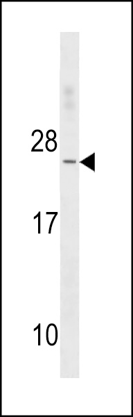 TNNC2 Antibody (C-term) (Cat. AMM08263G) western blot analysis in K562 cell line lysates (35ug/lane).This demonstrates the TNNC2 antibody detected the TNNC2 protein (arrow).