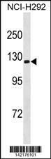 ATP1A3 Antibody (Center) (Cat. APG02084G) western blot analysis in NCI-H292 cell line lysates (35ug/lane).This demonstrates the ATP1A3 antibody detected the ATP1A3 protein (arrow). |
