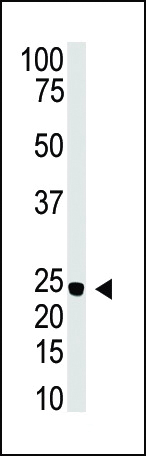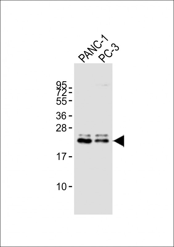 All lanes : Anti-Neurogenin3 Antibody (C54) at 1:500 dilution Lane 1: PANC-1 whole cell lysate Lane 2: PC-3 whole cell lysate Lysates/proteins at 20 μg per lane. Secondary Goat Anti-Rabbit IgG, (H+L), Peroxidase conjugated at 1/10000 dilution. Predicted band size : 23 kDa Blocking/Dilution buffer: 5% NFDM/TBST.
