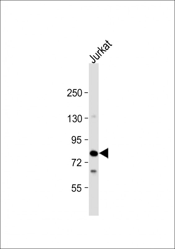 Anti-LCP2 Antibody (N-Term) at 1:2000 dilution + Jurkat whole cell lysate Lysates/proteins at 20 μg per lane. Secondary Goat Anti-Rabbit IgG, (H+L), Peroxidase conjugated at 1/10000 dilution. Predicted band size : 60 kDa Blocking/Dilution buffer: 5% NFDM/TBST. |