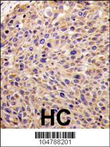 Formalin-fixed and paraffin-embedded human hepatocarcinoma tissue reacted with GGPS1 Antibody (N-term)(Cat. APR07109G), which was peroxidase-conjugated to the secondary antibody, followed by DAB staining. This data demonstrates the use of this antibody for immunohistochemistry; clinical relevance has not been evaluated. |