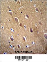NSE Antibody (Y236) (Cat. APR08839G)immunohistochemistry analysis in formalin fixed and paraffin embedded human brain tissue followed by peroxidase conjugation of the secondary antibody and DAB staining.This data demonstrates the use of NSE Antibody (Y236) for immunohistochemistry. Clinical relevance has not been evaluated. |
