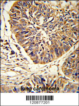 Formalin-fixed and paraffin-embedded human lung carcinoma reacted with PDIA3 Antibody (C-term), which was peroxidase-conjugated to the secondary antibody, followed by DAB staining. This data demonstrates the use of this antibody for immunohistochemistry; clinical relevance has not been evaluated. |