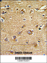 Formalin-fixed and paraffin-embedded human brain tissue reacted with IMMT Antibody (Center), which was peroxidase-conjugated to the secondary antibody, followed by DAB staining. This data demonstrates the use of this antibody for immunohistochemistry; clinical relevance has not been evaluated.