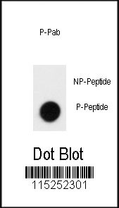 Dot blot analysis of anti-Phospho-SLAMF1-pY281 Antibody (Cat. APR11161G) on nitrocellulose membrane. 50ng of Phospho-peptide or Non Phospho-peptide per dot were adsorbed. Antibody working concentrations are 0.5ug per ml. |