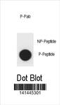 Dot blot analysis of SQSTM1 Antibody (Phospho S403) Phospho-specific Pab (Cat. APR09231G) on nitrocellulose membrane. 50ng of Phospho-peptide or Non Phospho-peptide per dot were adsorbed. Antibody working concentrations are 0.6ug per ml. |