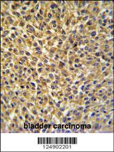 CRIP1 Antibody (C-term) (Cat. APG02768G) IHC analysis in formalin fixed and paraffin embedded bladder carcinoma followed by peroxidase conjugation of the secondary antibody and DAB staining. This data demonstrates the use of the CRIP1 Antibody (C-term) for immunohistochemistry. Clinical relevance has not been evaluated.