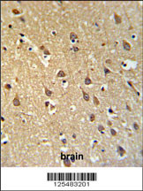 SPRN Antibody (C-term) (Cat. APR11291G) IHC analysis in formalin fixed and paraffin embedded brain tissue followed by peroxidase conjugation of the secondary antibody and DAB staining. This data demonstrates the use of the SPRN Antibody (C-term) for immunohistochemistry. Clinical relevance has not been evaluated. |