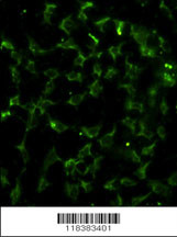 Immunofluorescence analysis of CA9 Antibody (Center) with hela cells . 0.025 mg/ml primary antibody was followed by FITC-conjugated goat anti-rabbit lgG (whole molecule). FITC emits green fluorescence. |