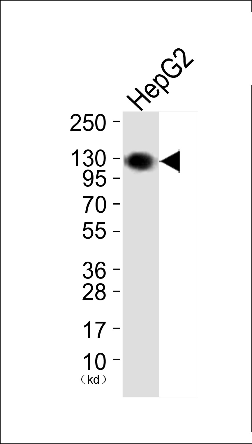 Western blot analysis of extracts from HepG2 cells, using EPHA2/3/4 (Ab-588/596) Antibody. The lane on the left is treated with synthesized peptide.