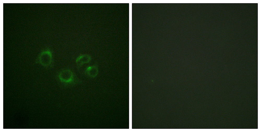 Immunofluorescence analysis of A549 cells, using EPHA2/3/4 (Ab-588/596) antibody. |